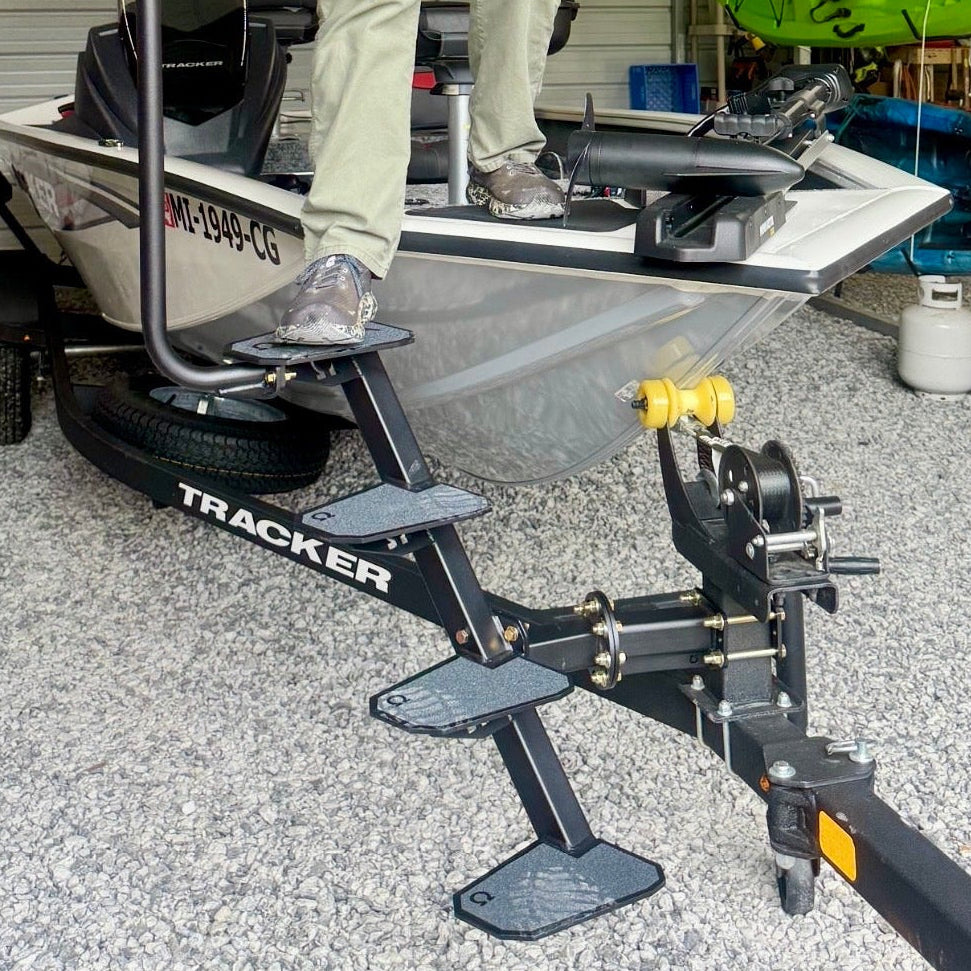 Built off our proven XL triple step just bigger providing entry into boats with bow heights from 28'' all the way to 40'' tall measured from the top of the tongue. As always fits in a standard 7' garage door.